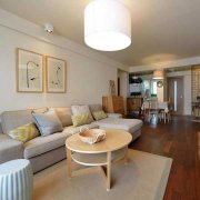 1. 客厅的颜色和装饰都选用淡色,地板是原有实木地板打磨上木蜡油,在节约