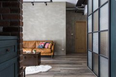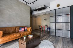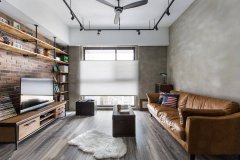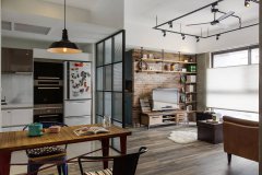 身為機師的男主人因為工作機會常遊歷世界各地,也因此醉心於深具異國風情的居家設計,尤其是美式 Loft 風格更深得其心,本身更蒐羅許多帶著濃厚復古氣息的單品家具,經過設計師匠心獨運的巧妙搭配,使男主人的收藏與居家設計得以完美結合。 設計師認為原先屋內的色調過於平淡,且白色占比過多,除了牆面外,連門板也是單一純白色調,因此以特殊漆全面重製。