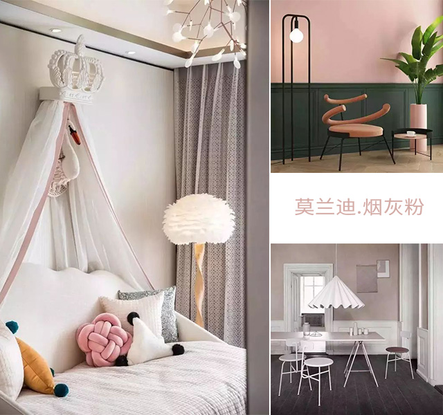 这种颜色饱和度低,但是大面积地铺陈于家居空间,与纯白、雾霾蓝、高级黑等养眼的色调搭配起来,会比甜腻的少女粉更具质感,让空间气质瞬间变得柔和优雅起来。