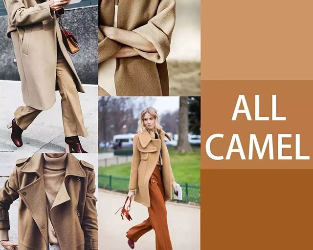 驼色和红色、绿色等鲜艳的色彩一样,驼色同样来自于大自然,来自于苍茫的沙漠、坚韧的岩石……但有趣的是,这种来自于自然界的色彩却具有一种非常都市化的味道。驼色是淡定的,就像一杯恰到好处的清茶,酽而不燥,淡而有味,是搭配中令人放心的底色——平和宁静,但绝不乏味。