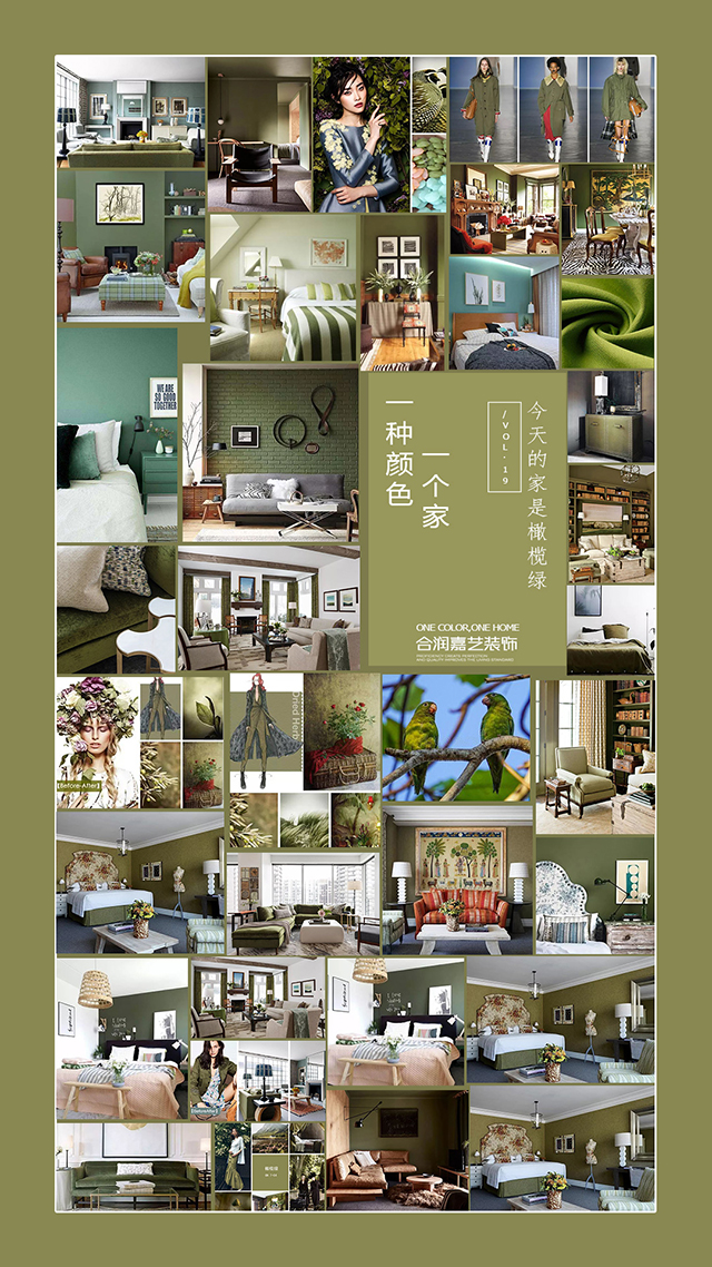 橄榄绿来源于植物果实的色泽,与大地色系配搭,自然经典,展露着宁静与祥和的居家氛围。橄榄绿大面积装饰墙面,与白色天花板打造出清雅格调。