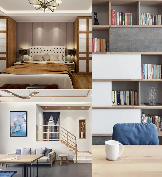 白色与原木色搭配,弥漫着清新自然的味道,让整个房间有着轻松自由的氛围,营造出十分减压的环境。在这样的世界里,不需要伪装,可以卸下面具,做最真的自己。