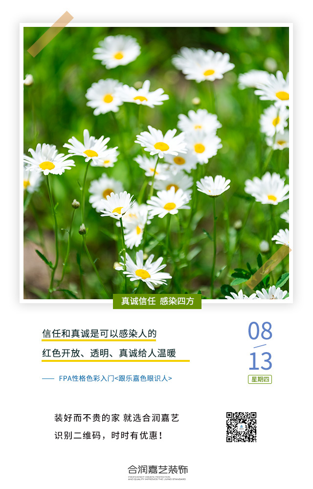 当红色交流相当于商业机密的这些信息时,表达了红色对人的绝对信任,这对于其他性格是不可想象的。黄色天性的理性和注重事实,蓝色天性的理智和谨慎小心,绿色天性的安全和胆小怕错,都会本能地排斥这样的行为;唯独红色,他们的开放、透明、真诚让他们给人温暖。