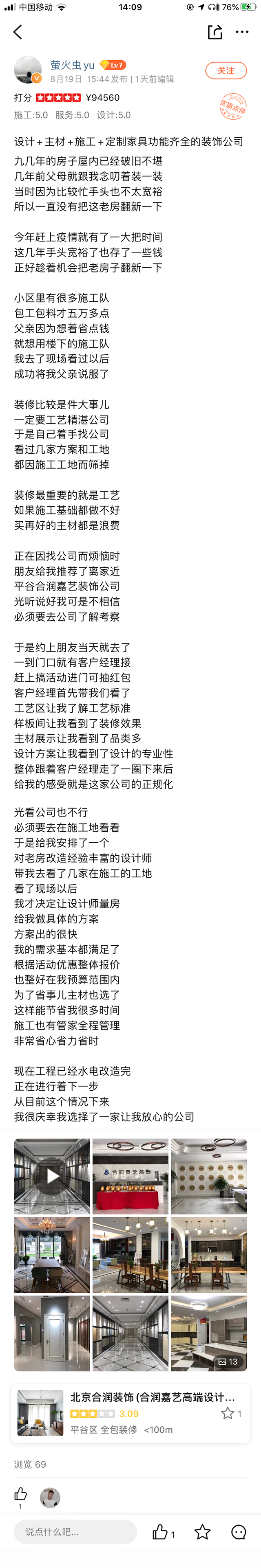 [摘要] 做装修,交朋友! 人生总有不期而遇的温暖! 一份点评,满满感恩情。 大众的一篇评论对于业主来说, 是一种表达感谢的工具和对装修服务的信任, 而对于合润嘉艺装饰来说 则是一种肯定