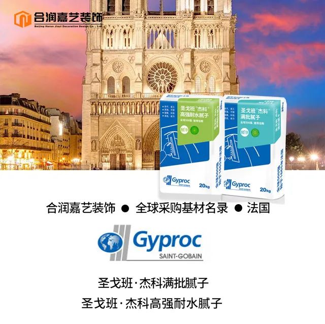 合润嘉艺装饰选用的圣戈班.杰科醛净系列腻子粉是采用石膏为主要材料,外加环保添加剂,采用专利的环保配方配制而成,独特的晶体网状结构使其干燥后有较强的的附着力和遮盖力,使面层装饰材料能完美的依附在墙体表面,科学环保的配方使圣戈班.杰科获得法国室内环境检测环保等级最高的A+认证标志和中国十环环境标志产品的认证。