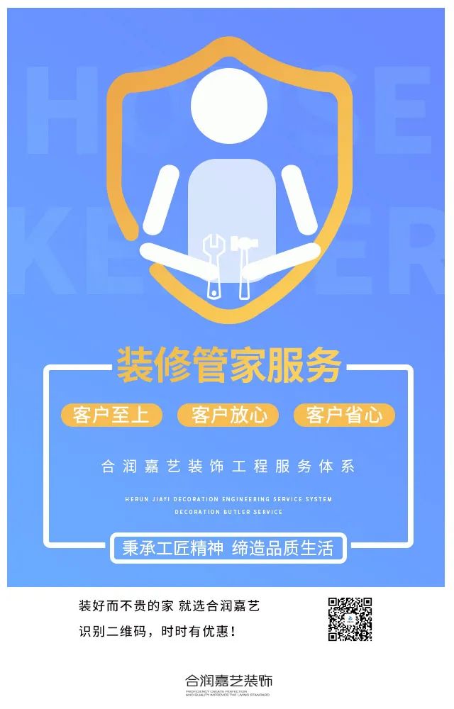 合润嘉艺装饰工程服务体系-装修管家。客户至上,客户放心,客户省心的服务体系的理念,装修管家任重而道远,目标就是一切以提升客户体验为基础,让客户明确一个工地之所以做得好是因为我们装修管家管得好而好。