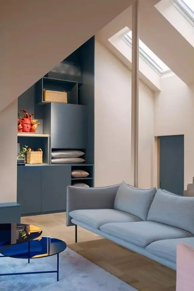 在装修中,纯度高的色彩中加入其他颜色,色彩会互相冲突,原本色彩的鲜艳度也会随之降低,使人难以理解其设计的主题是什么。这时候,就需要尘灰色之类的中性色来中和了。