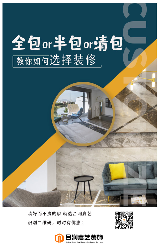 [摘要] 半包、清包、全包 经常会有人问小编什么是半包、什么是清包、什么又是全包,今天小编就来系统地给大家介绍下它们之间的区别。这三种方式又有哪些优点和缺点呢?就让我们一起来涨涨知