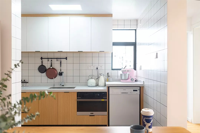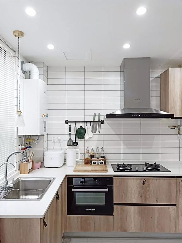 30、厨房装修色调选择上建议选择暖色系,更加温馨有食欲。