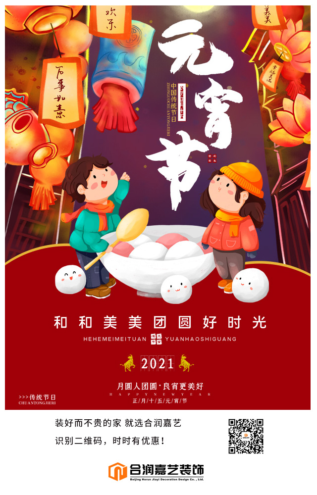 合润嘉艺装饰祝愿你的人生,如花灯般璀璨,如元宵般圆满。祝大家:元宵节快乐。