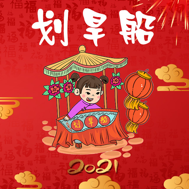 划旱船,也称跑旱船,就是在陆地上模仿船行动作,表演跑旱船的大多是姑娘。旱船不是真船,多用两片薄板,锯成船形,以竹木扎成,再蒙以彩布,套系在姑娘的腰间,如同坐于船中一样,手里拿着桨,做划行的姿势,一面跑,一面唱些地方小调,边歌边舞,这就是划旱船了。有时还另有一男子扮成坐船的船客,搭档着表演,则多半扮成丑角,以各种滑稽的动作来逗观众欢乐。划旱船流行于中国很多地区。
