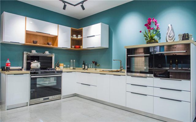 墙面可以粉饰成淡蓝色或暖黄色等让心情舒展的色彩,这样也能让厨房的空间显得更大一些。集成灶选择大胆亮丽的色彩,厨房地柜柜门可以选择和集成灶一体的色彩。地面也可以贴上具有欧式品位的瓷砖,让整体厨房都充满个性。