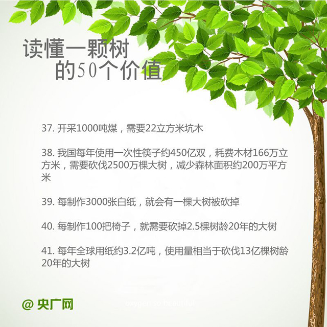 据有关资料显示,我国每年消耗一次性筷子450亿双,耗费木材166万立方米,需要砍伐大约2500万棵大树,减少森林面积200万平方米。
