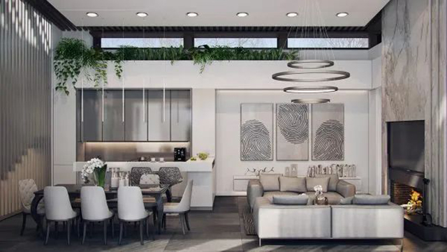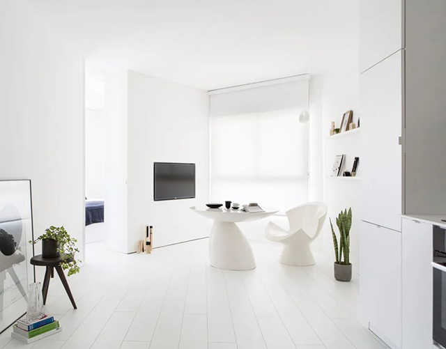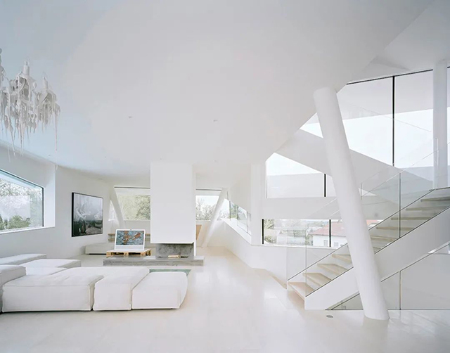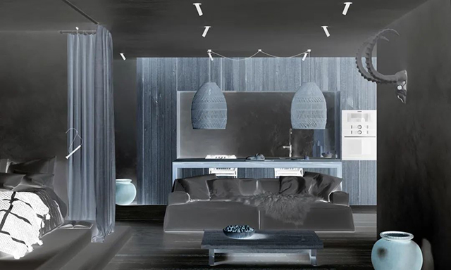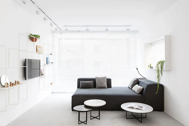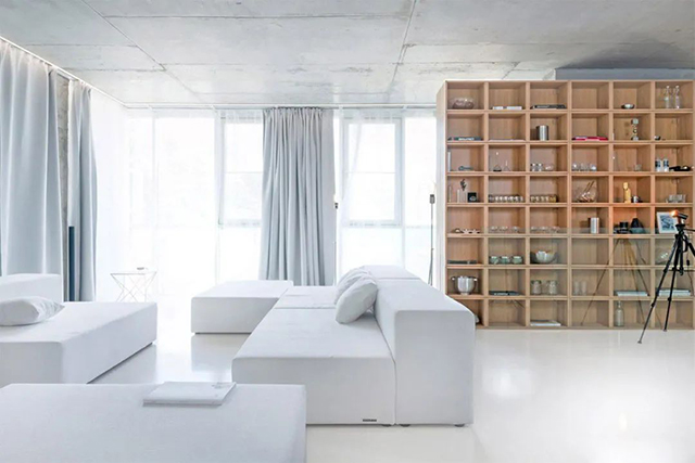 但为避免过于僵硬、冷酷,偶尔也会根据实际情况增加木色等自然元素来软化,或用黄色等对比强烈的暖色,减弱原来的效果。