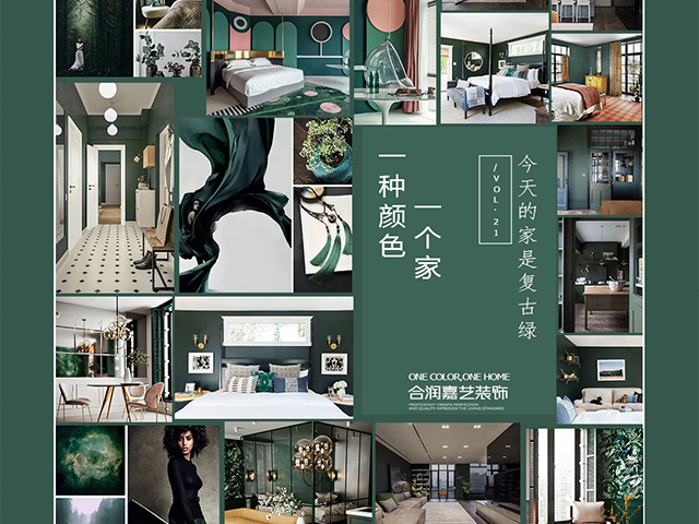 不同于鲜亮青草绿,现代装修风格中的暗绿色总是给人一种经典而高档的复古感。与不同的色彩结合,百变的复古绿也能带给人不同的视觉体验。它含蓄低